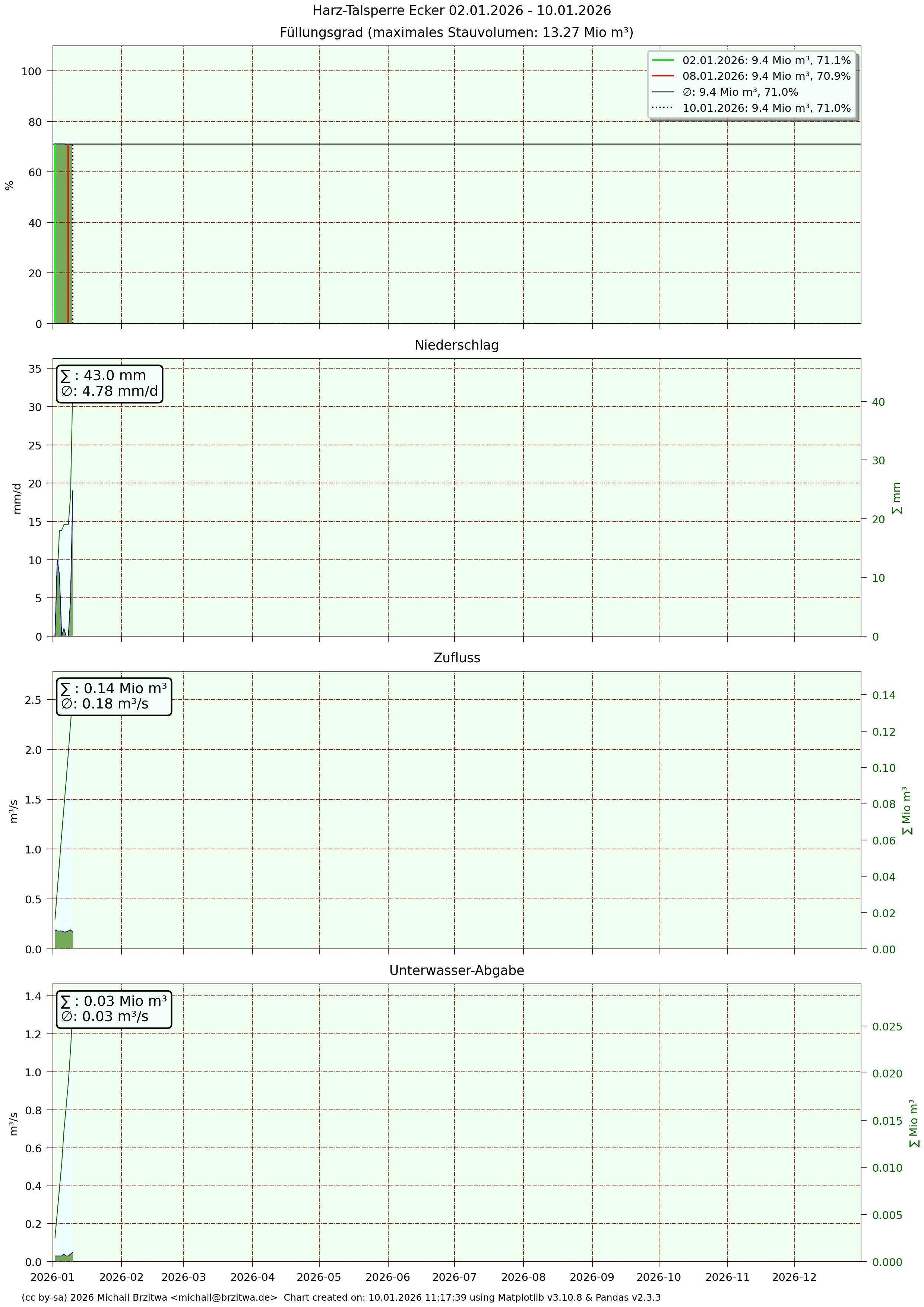 2026 Füllungsgrad, Niederschlag, Zufluss und Unterwasser-Abgabe Eckertalsperre