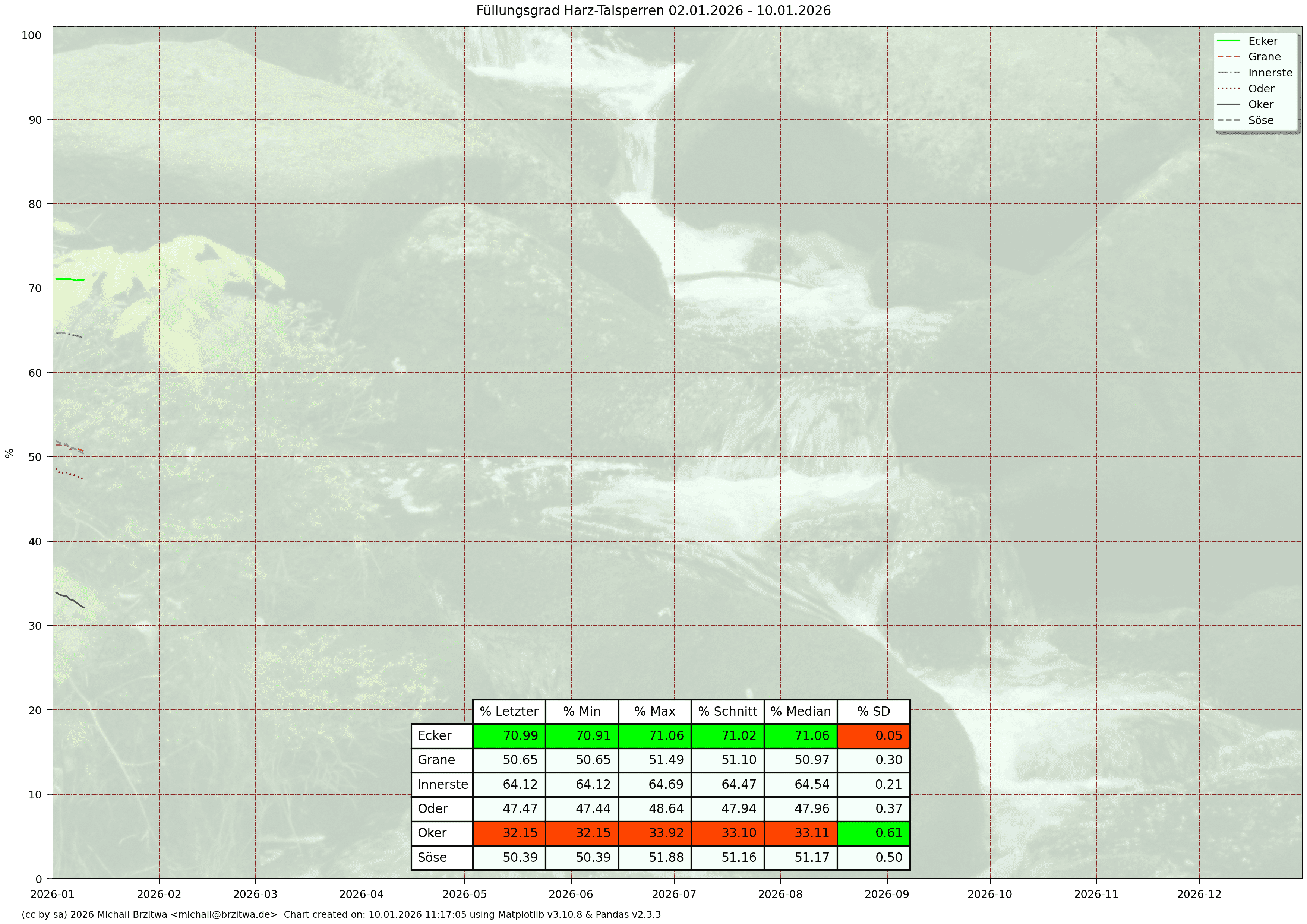 Alle hier gemachten Angaben und Auswertungen ohne jegliche Gewähr der Korrektheit. Die von der Harzwasserwerke GmbH übernommenen Daten sind von dieser GmbH oder anderer Seite weder geprüft noch verifiziert.